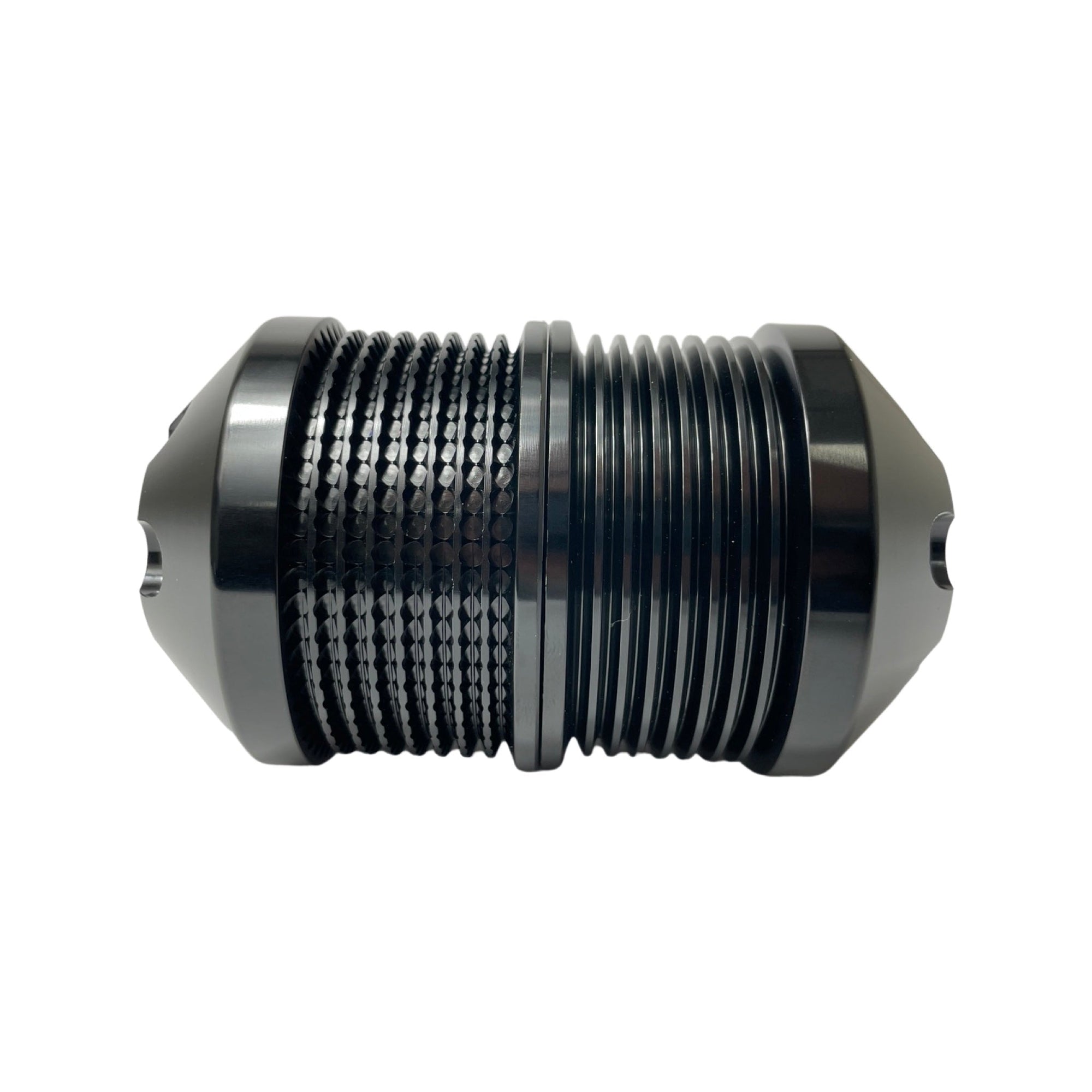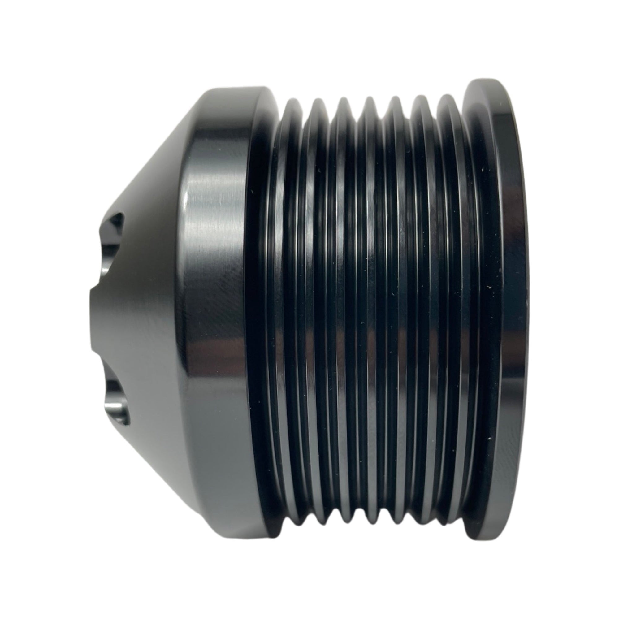 The patent pending CNC Convex Knurling Process (CKP) on the SPE pulleys offers a perfect balance between belt grip and wear. The machining process allows the rib surface to offer varying grip under different belt loads. Under minimal boost (light Throttle) the belt tension is lower at the pulley face. The process offers a low load area for the belt to have normal factory like contact on the rib face allowing the belt to wear less over time. When load is applied it is wedged down into the Convex knurling the grip becomes more aggressive to the belt the higher the load (Boost demand) becomes. This keeps the belt on a perfect grip/wear threshold. Unlike Laser surface etching found on our competitors pulleys our process doesn't degrade or wear off. Since our pulleys don't wear they are more consistent giving the customer better track times and dyno numbers. Although SPE's CNC Convex Knurling Process is costly to produce we are more concerned with providing our customers the best quality product at the best price possible.