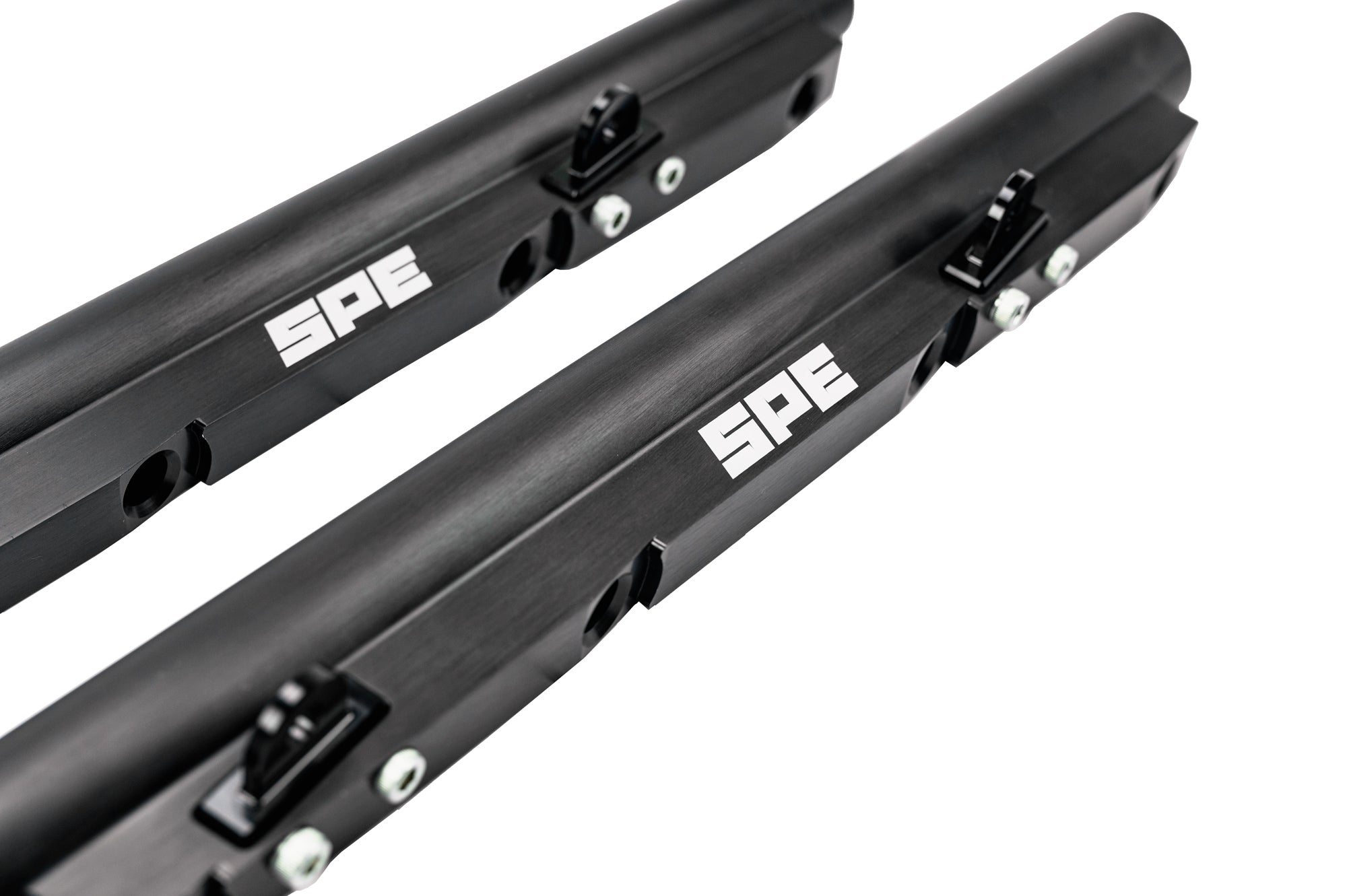 Upgrade your Ford 7.3L Godzilla fuel system with the SPE Motorsport Fuel Rail Kit. Designed for maximum compatibility and hassle-free installation, these billet fuel rails provide enhanced fuel flow via -12An fuel rail extrusions machined with -12an orb bosses. They install in the factory location with billet mounts. Not with flimsy sheet metal brackets. The height is also adjustable by post length for varying fuel injector sizes.