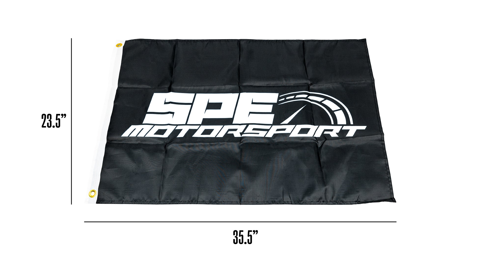 Let your gearhead flag fly with the SPE Motorsport Garage Flag. This polyester flag has two high quality metal eyelets (located on the left side) that allows this to easily be hung up in a multitude of locations! Whether in the garage, the shop, or on the boat... you can easily rep your love of SPE Motorsport.