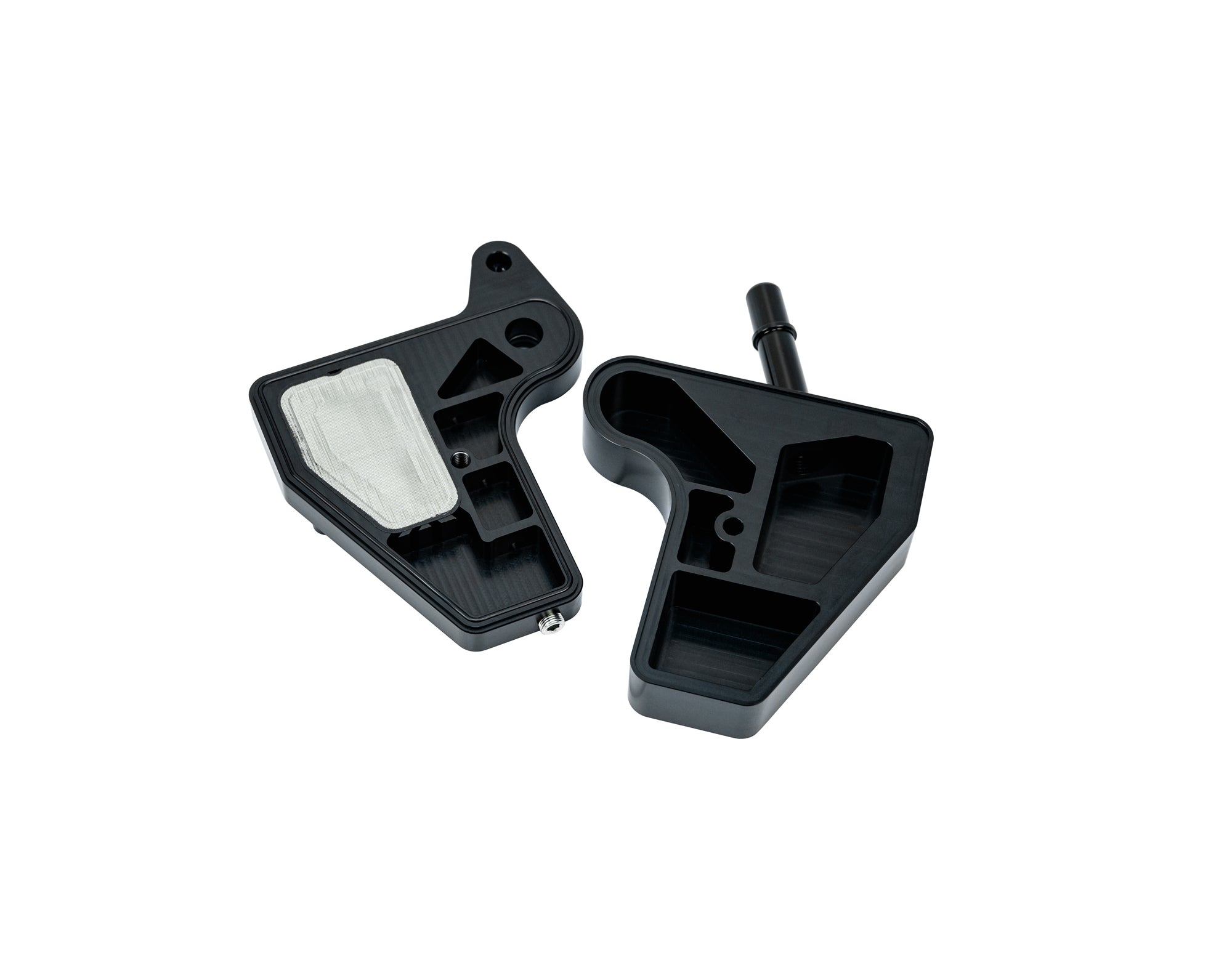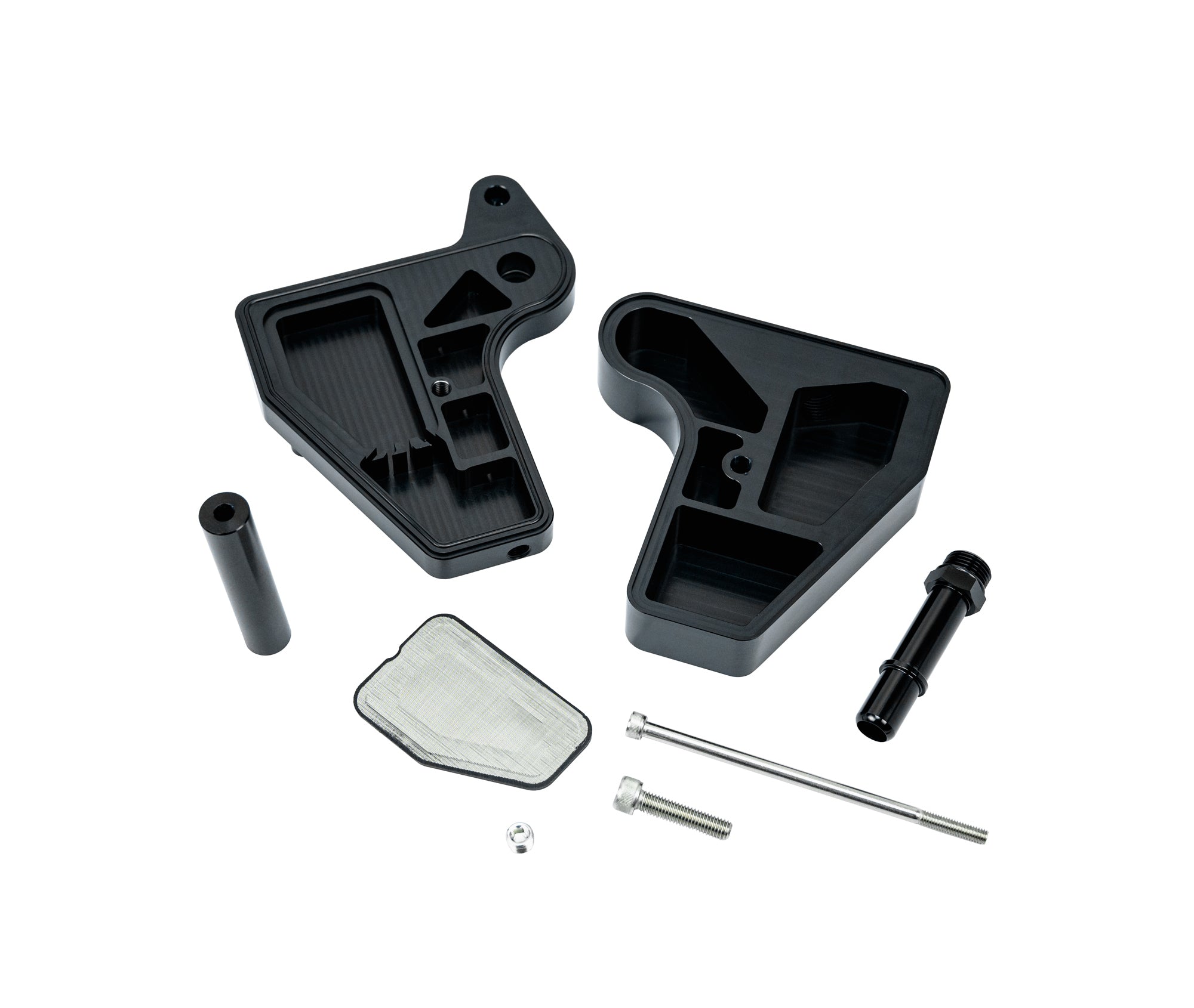 Over the years there have been many universal catch cans, so we decided instead of doing a universal design across many different platforms as others do, we would build ours around the engines they needed to protect and function on. To properly design a separator for the modular Coyote family we needed to start with the proper filter element. We designed an injection molded stainless steel filter that has a two stage coarse and fine filter elements. All-in-one easy to clean assembly. This promotes high flow while separating the oil from the vapor and that happens after first passing through a standard baffle network. For the customer containing the oil and not draining it back, we wanted to provide ample capacity. Even at 6 ounces of oil capacity the system can safely breathe.