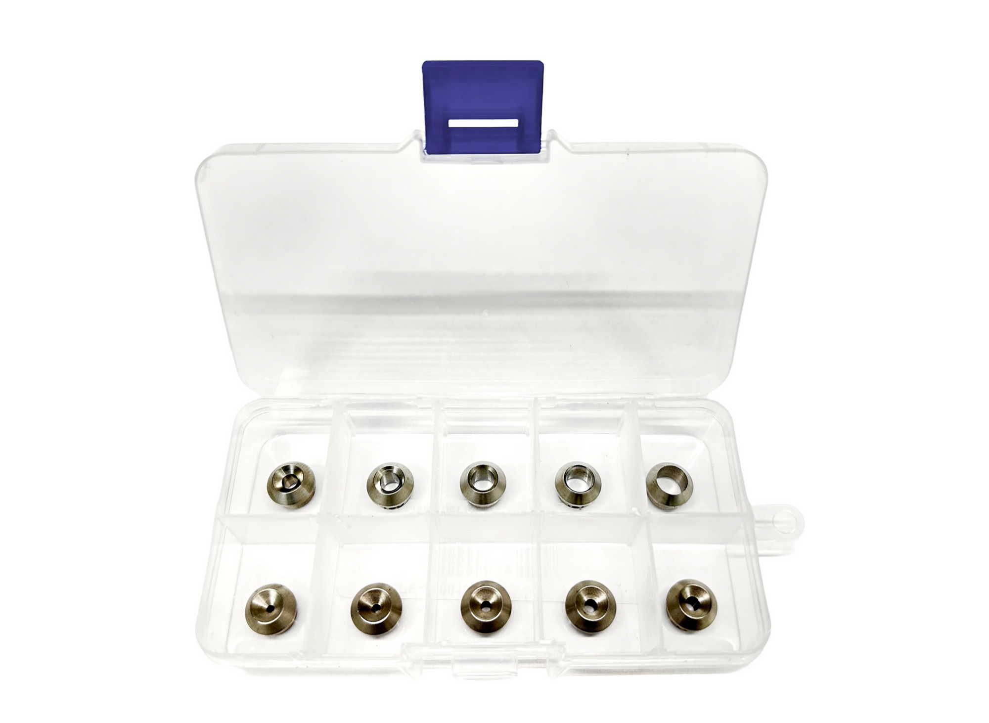 Uncork more performance with the Big D Nitrous Jets, designed for enthusiasts who need extreme amounts of dry nitrous flow. These work with SPE Big D -6 nozzles. These jets are machined from 304 Stainless steel, not brass or steel like other options on the market. This makes removal and overall longevity superior to other jets. Sizes are lasered on the jets for quick referencing. Save versus buying individually. Storage case included!