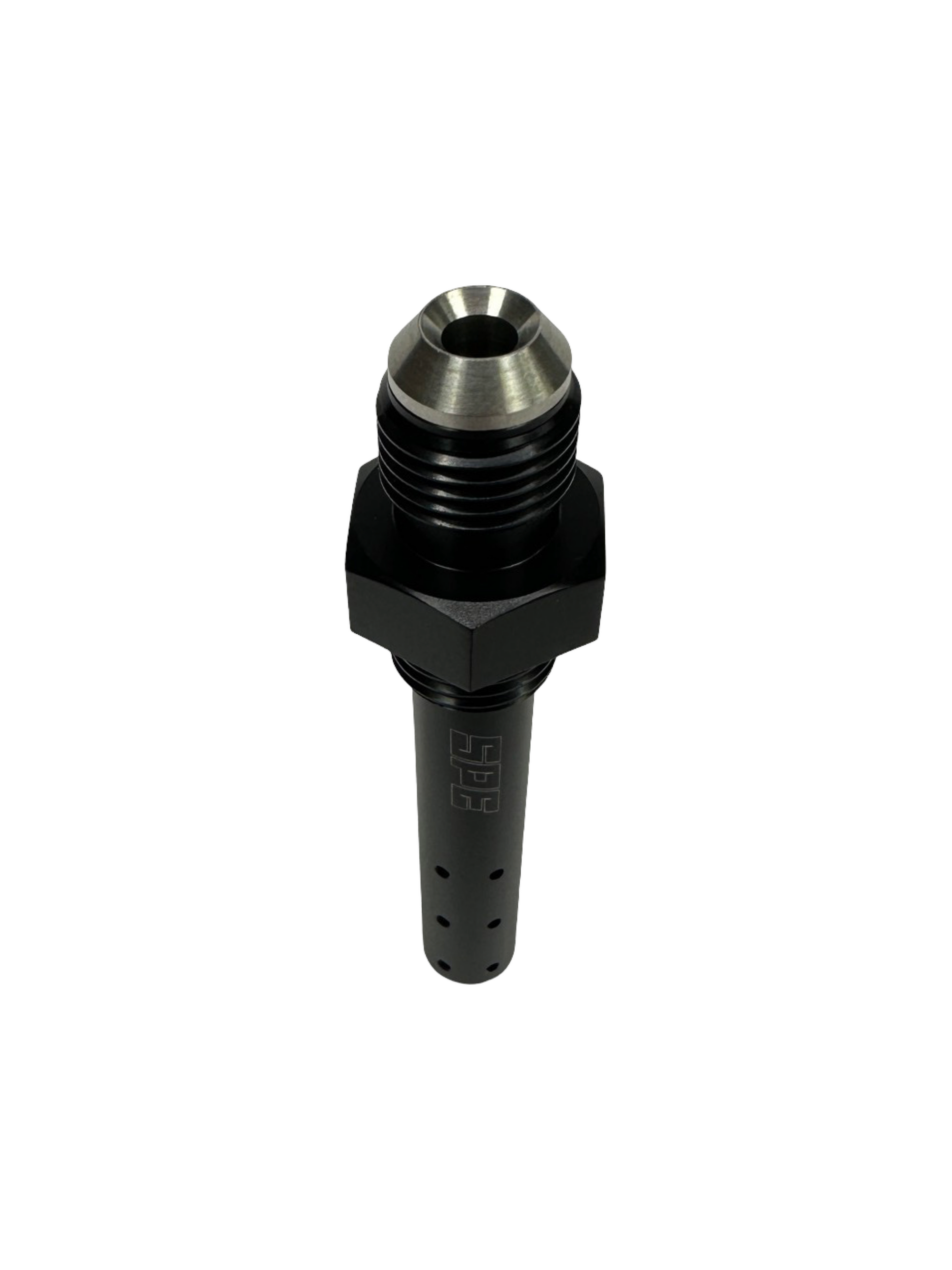 This dry nozzle has an I.D. of .320" and can flow up to 1000HP of nitrous. This nozzle can be used for extreme racing applications or Huge Horsepower numbers. Big D -6 Plume nozzles feature an extreme radial spray design so the nitrous atomization with the air charge is as optimal as possible. The NPT threads also allow it to be clocked as desired.