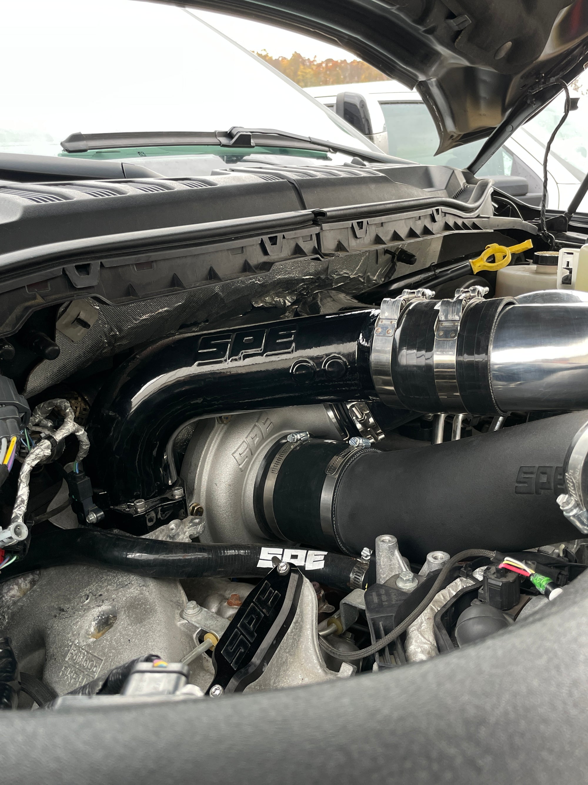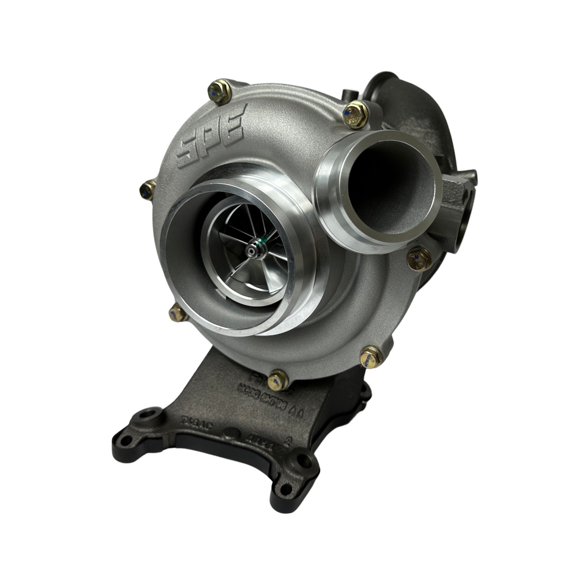 After many years of modifying and repairing turbochargers we found many flaws & failure points which we have addressed and rectified in the new SPE Stage 2 Strike VGT Turbo. If you want to make power that is what this turbo was designed for. SPE did a complete redesign instead of just changing a couple parts like our competition. This includes a new turbine, turbine housing, compressor wheel, compressor housing, and even larger oil flow passages in the center section. The housing A/R (area over radius) ratios have been changed to suit the larger turbine and compressor wheel. This has all been done to provide our customers a turbo that drives like stock and can support a proven 150hp more than a maxed out stock 15+ turbo.