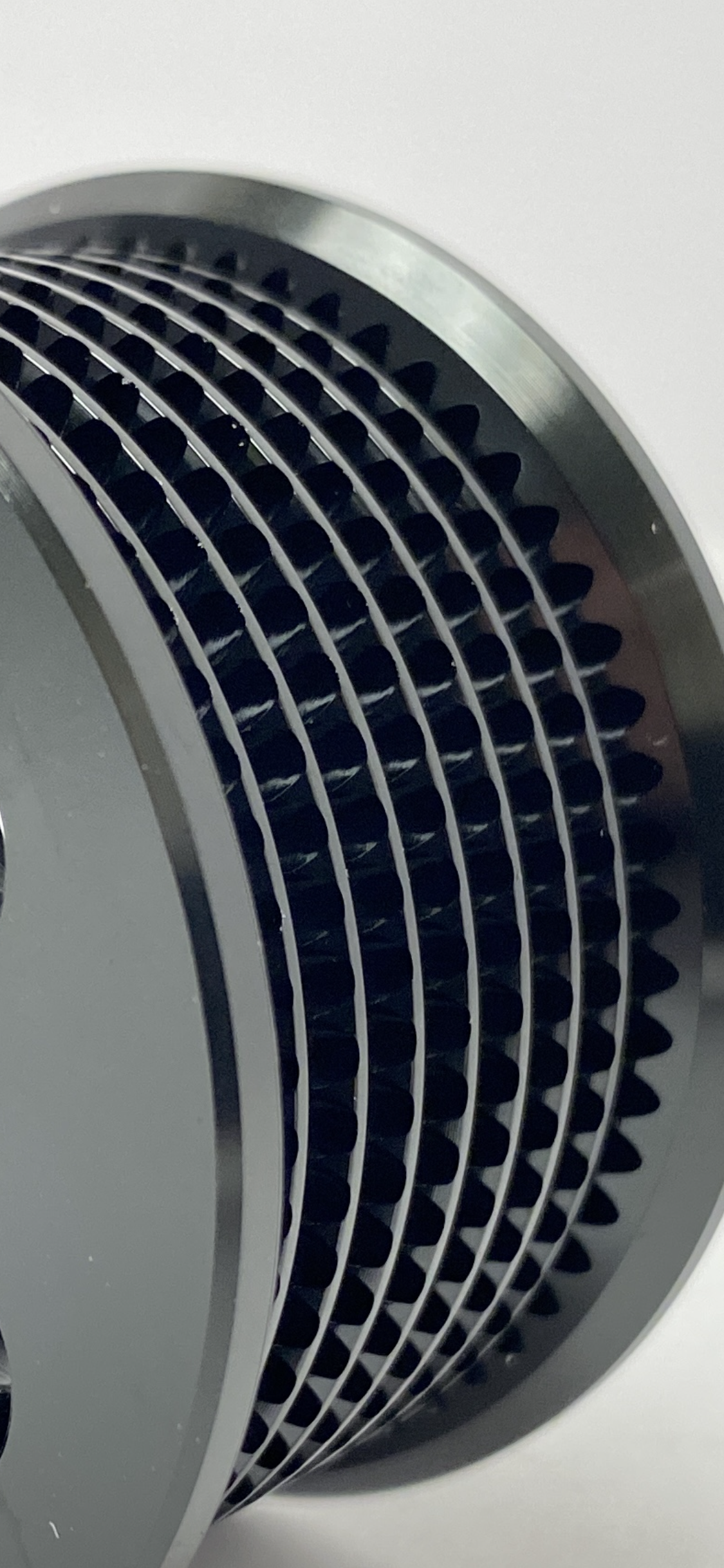 The patent pending CNC Convex KnurlingĀ process (CKP) on the SPE pulleys offers a perfect balance between belt grip and wear. The machining processĀ allows the rib surface to offer varying grip under different belt loads. Under minimal boost (light Throttle) the belt tension is lower at the pulley face.Ā The process offers a low load area for the belt to have normal factory-like contact on the rib face allowing the belt to wear less over time. When the load is applied it is wedged down into theĀ Convex knurling the grip becomes more aggressive to the belt the higher the load (Boost demand) becomes.Ā  This keeps the belt on a perfect grip/wear threshold. Unlike LaserĀ surface etching found on our competitors' pulleys our process doesn't degrade or wear off.Ā Since our pulleys don't wear they are more consistent giving the customer better track times and dyno numbers.Ā  Although SPE's CNC Convex Knurling Process is costly to produce, we are more concerned with providing our customers the best quality product at the best price possible.