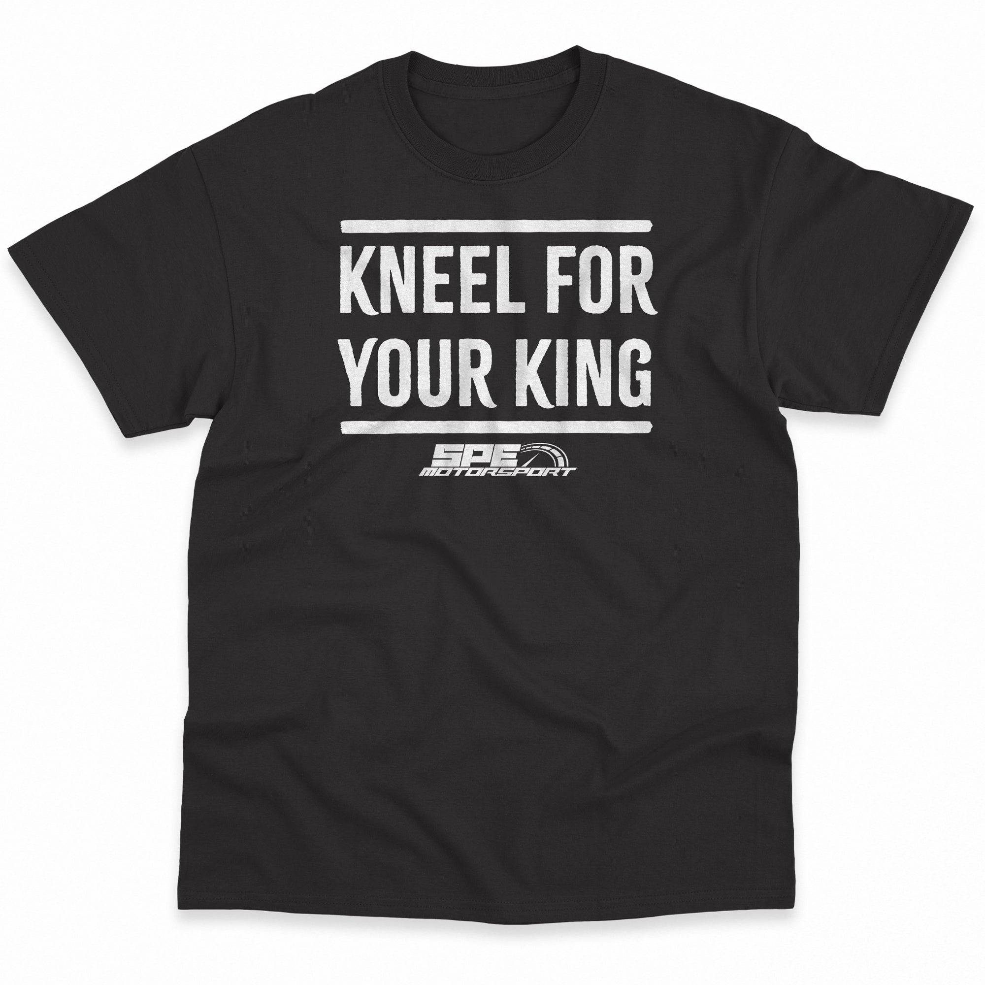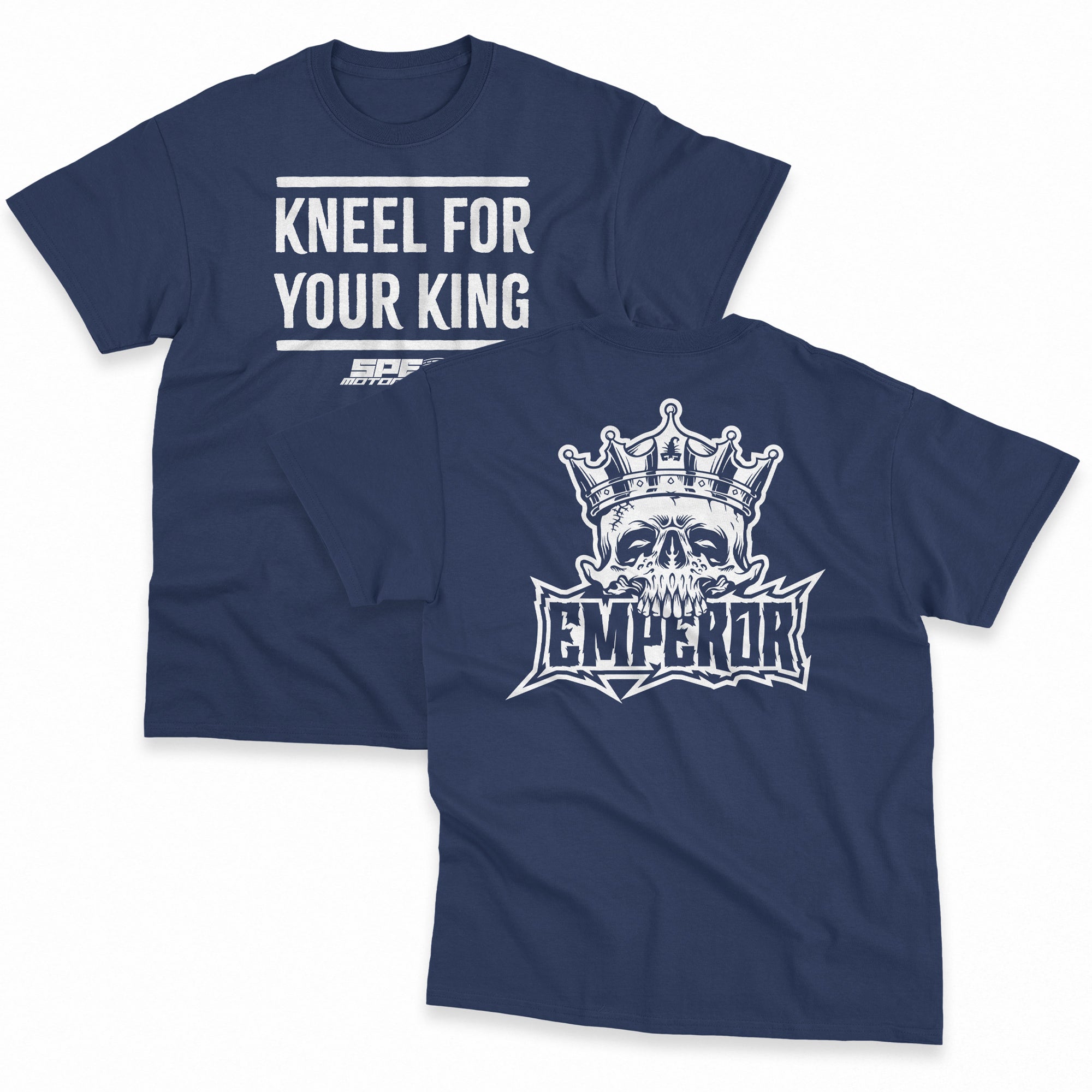 Presenting the SPE Emperor Turbo T-Shirt, a homage to the regal Emperor Turbo. This tee features the commanding message "Kneel for your King," reflecting the dominance of the Emperor scorpion. Made for those who exude authority, it combines powerful graphics with a striking design. Perfect for asserting your presence both on and off the road. Wear it, and let the world bow to your reign.