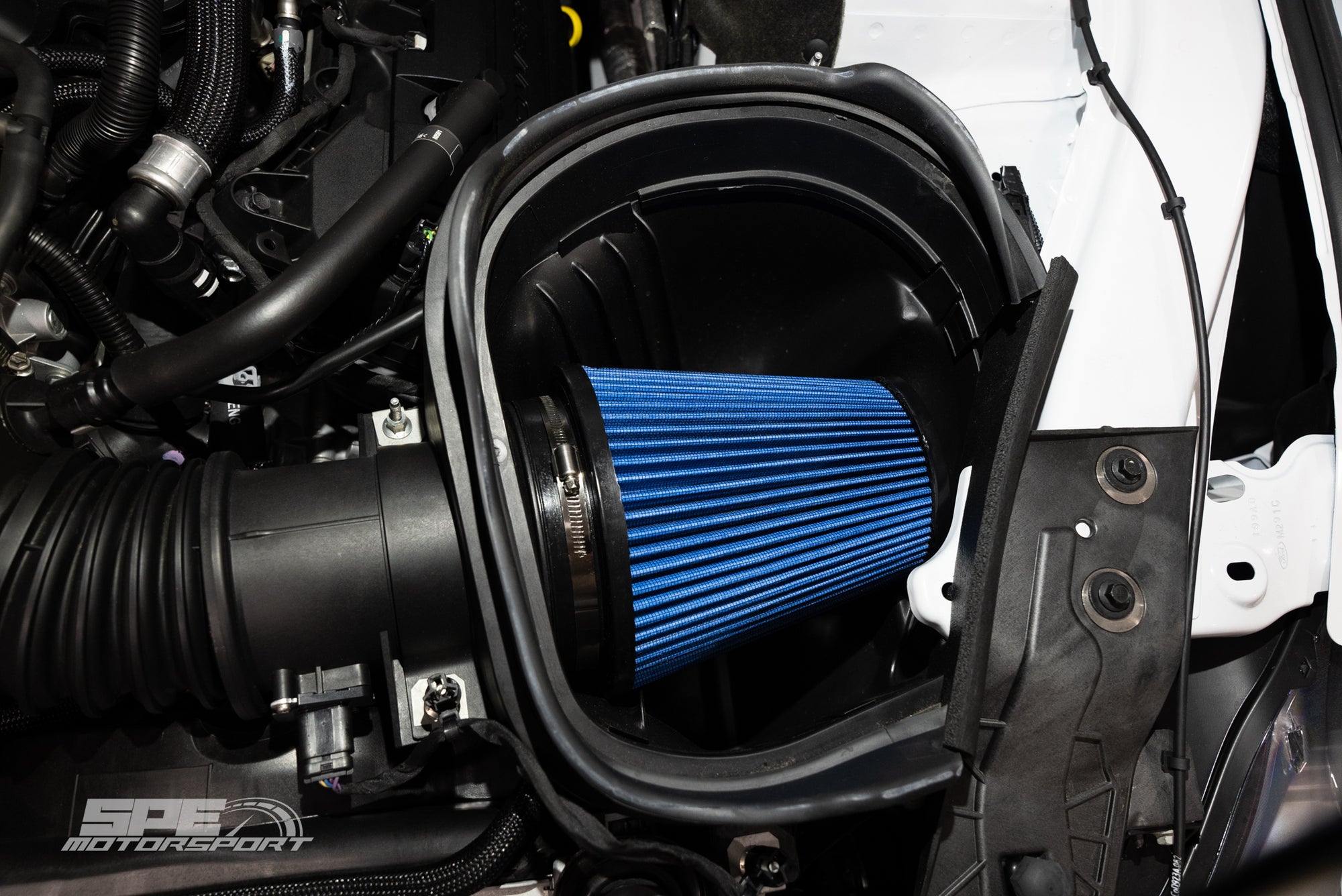 The SPE Motorsport Drop-In Filter for the 2020-2022 GT500 is made from cotton non-woven filter material that can be run dry or oiled. This filter is a direct drop-in replacement for the OEM factory filter offering highly-efficient air filtration resulting in better performance and protection for your engine.