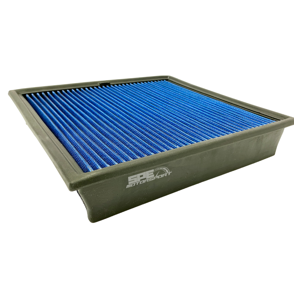 SPE Motorsport has developed a new level of drop in filter with our performance replacement filters. The SPE Motorsport drop in filters are designed to optimize the factory air box without giving up anything, giving great performance gains, optimizing filtration, and are washable allowing you to use them over and over again.