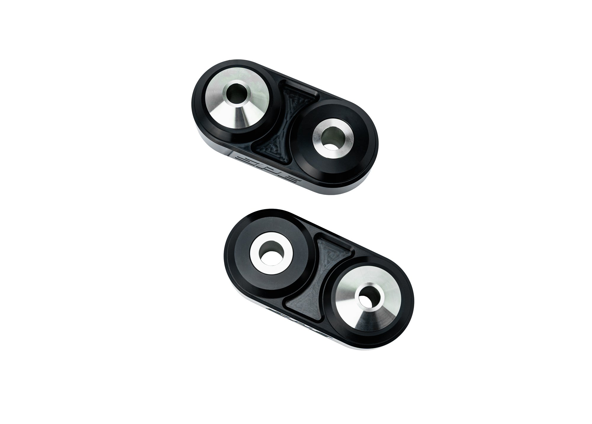 SPE Motorsport's GT500 Street Vertical linksĀ are designed with CNC machined Delrin bushings and 304 stainless sleeves inside a 6061 billet aluminum housing. This design gives excellent performance with zero deflection. SPE has also engineered our vertical links to clear most 18" wheels to allow fitment of a drag tire on the back of your gt500.Ā