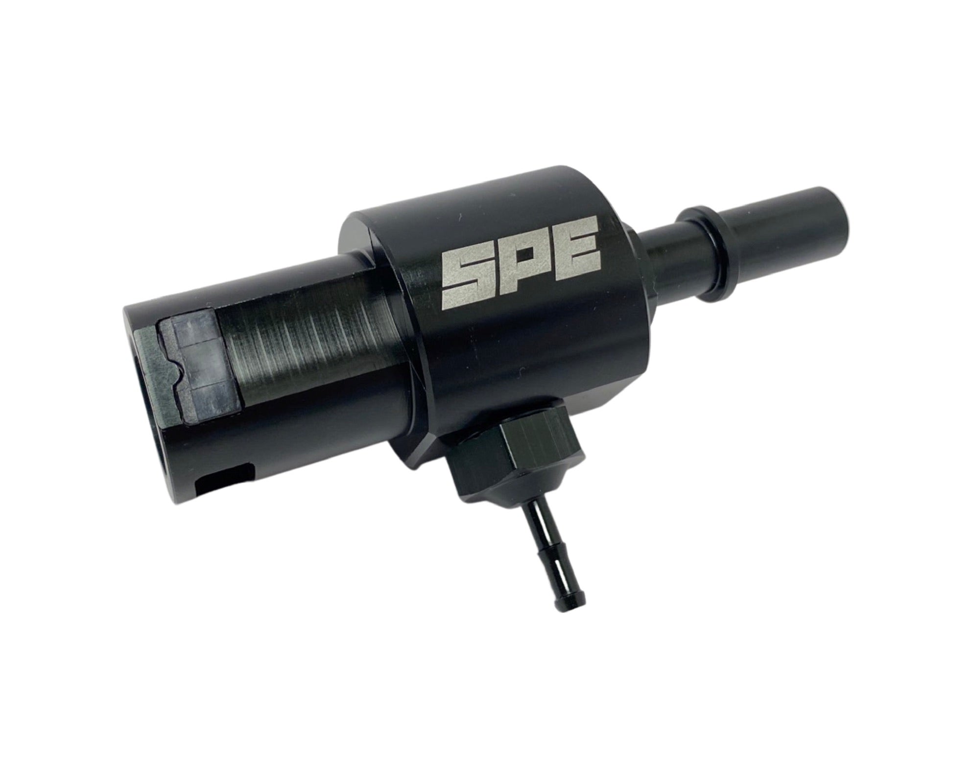 The injector fuel return line has great SPE quality as always. Very simple installation. That’s good peace of mind knowing that little plastic fitting is gone. I have the upper radiator hose and the recirculating CCV kit in now as well. All the black anodized billet parts and silicone hoses are top notch. Thanks guys for your outstanding quality standards!
