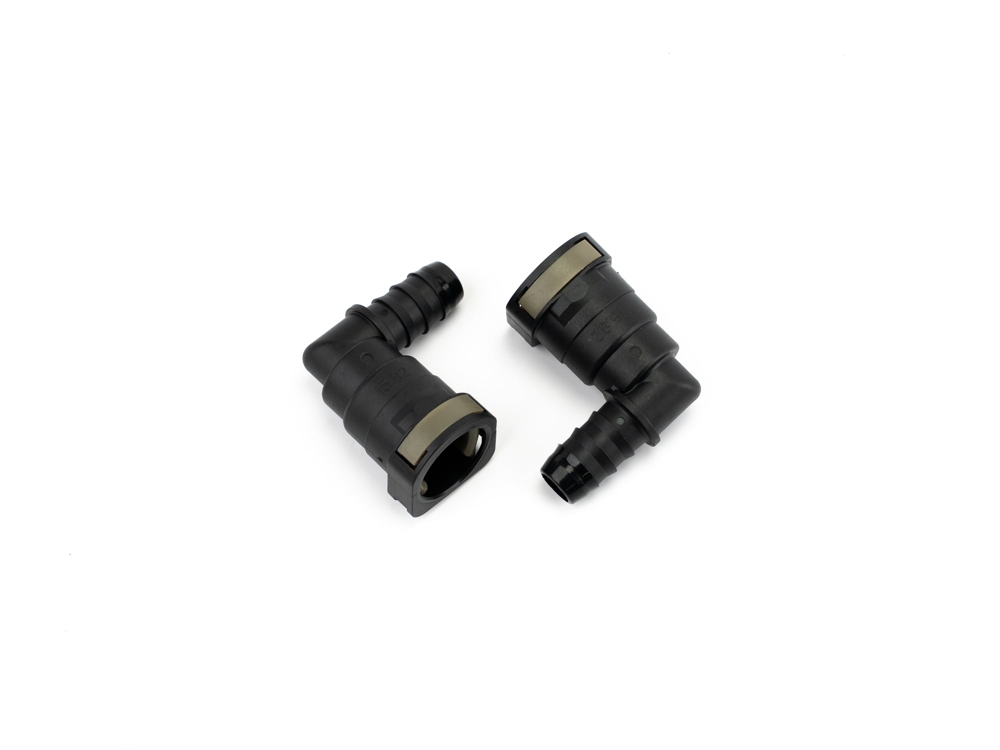 This kit includes S650-specific quick-connect PCV adapters, black-anodized AN-style 90° fittings, & properly sized hose for both inlet and outlet. This allows the entire system to integrate seamlessly with the S650 Mustang’s factory PCV ports. No clamps stacked on plastic barbs. No parts store adapters.